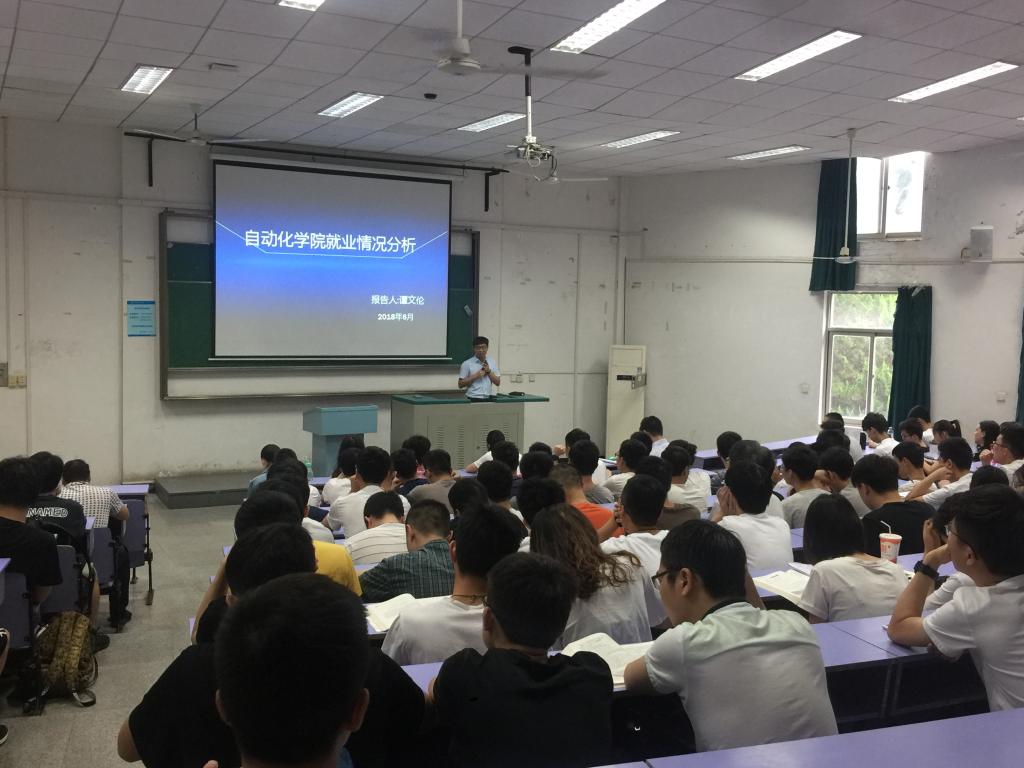 谭老师向同学们介绍了近五年本院的毕业生就业情况,包括就业率、就业薪资水平、就业去向、上研率等。谭老师指出,我院自动化专业和测控专业的就业率保持在较高水平;毕业生平均薪资比较可观。毕业生就业去向比较广泛,包括IT、交通、环境、能源行业等,充分体现了本院宽口径的专业特点;鼓励同学们认真学习专业知识,提高自身能力,找到理想工作。谭老师还谈到了就业选择问题,指出就业选择时往往考虑的因素很多,从这几年的情况来看,薪酬高低对于一些毕业生已不再是首要考虑的因素,地域、工作舒适度、未来发展等因素也被着重考虑。谭老师分享了近几年来学院老师走访企业的情况,提醒学生要充分利用学院发展起来的就业资源,积极联系已就职的师兄师姐,增加就业机会。